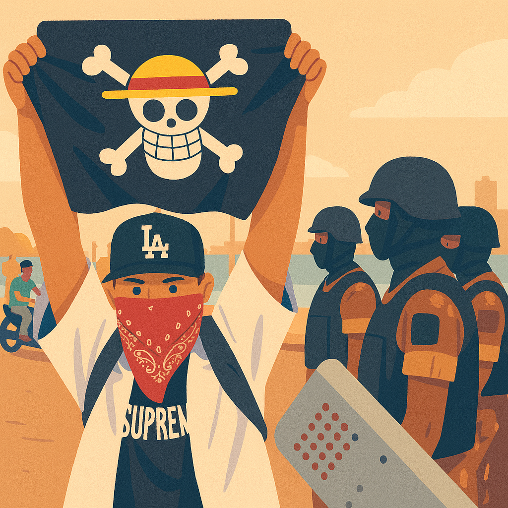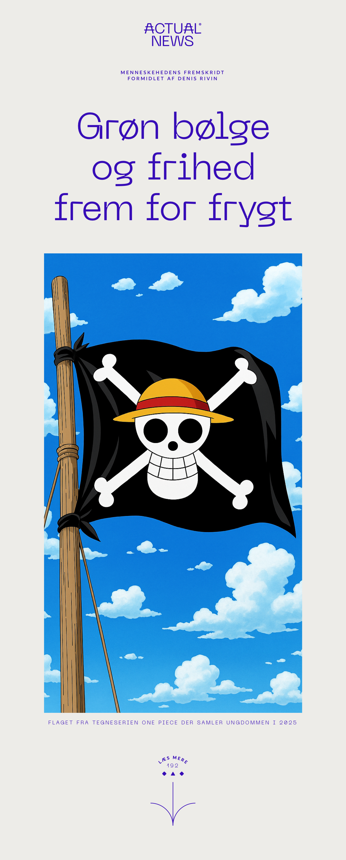 Det globale ungdomsoprør har i sensommeren samlet sig under et fælles flag der er taget fra den japanske manga One Piece: Et piratflag med stråhat – og mottoet FRIHED FREM FOR FRYGT.